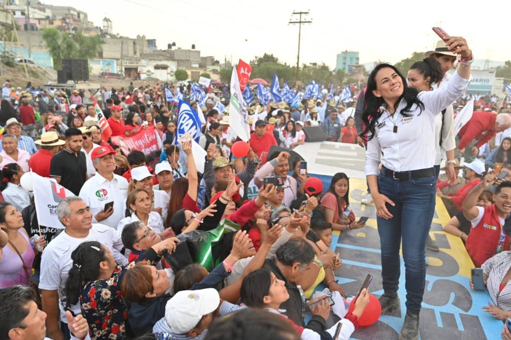Entre porras y banderas, la candidata aliancista puntualizó que visitará Ecatepec las veces que sean necesarias “porque el 4 de junio está muy cerca y la próxima elección está en sus manos para que podamos trabajar porque el Estado de México siga siendo una entidad próspera para todas y todos”.