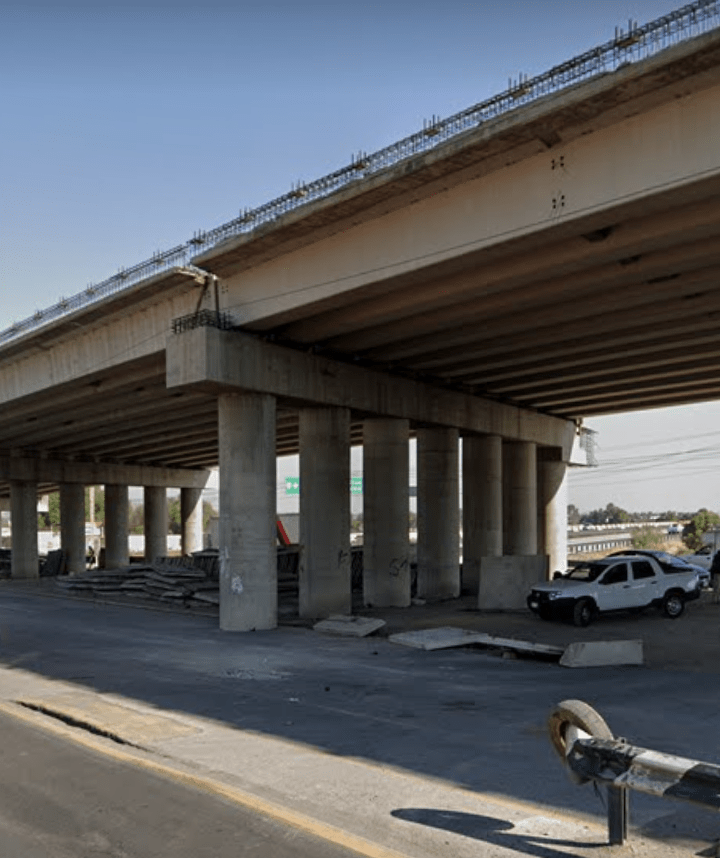 Tezoyuca, Edomex. La construcción del puente vehicular sobre la carretera federal Texcoco-Lechería a la altura del municipio de Tezoyuca, está mejorando el tránsito vehicular en la zona, ya que forma parte de los trabajos federales que complementan la autopista Texcoco-Pirámides.