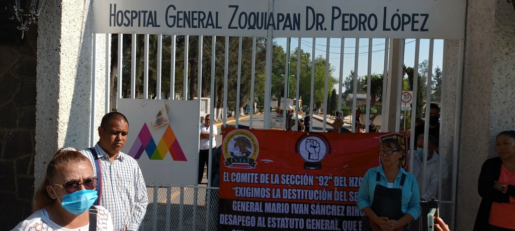 Ixtapaluca, Edomex. Trabajadores del Hospital General Zoquiapan «Dr. Pedro López», esta mañana se manifestaron a la entrada del nosocomio para exigir la renuncia del director Salvador Hernández Maldonado quien ha permitido corruptelas en el servicio público de la salud así como la escasez de insumos para este hospital.