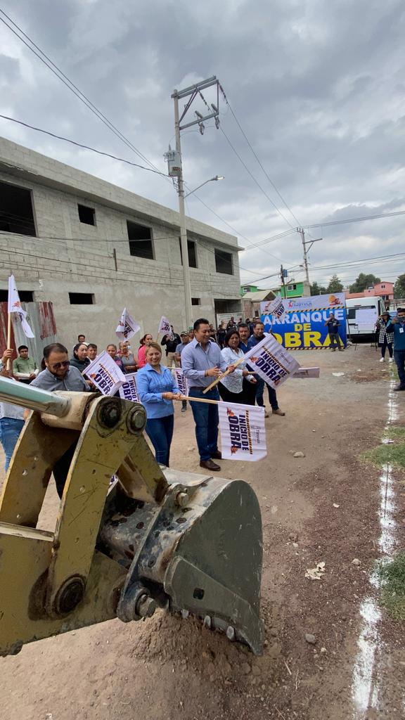 Tezoyuca, Edomex. 27 junio 2023. El presidente municipal de Tezoyuca, Edgar Uriel Morales Ávila, dio el banderazo para el arranque de obra en la cerrada Altitla, en el barrio de La Concepción.