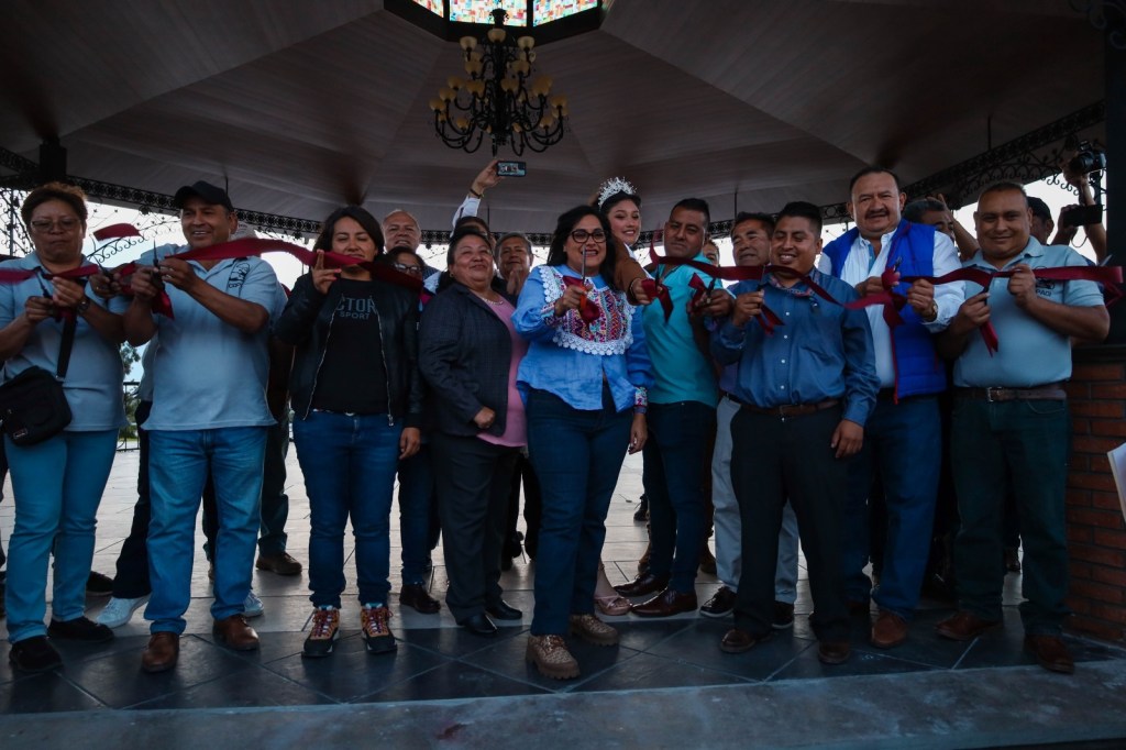 Texcoco, Edomex. 13 septiembre 2023. Continúa el gobierno municipal de Texcoco con la entrega de obras a las comunidades. En San Miguel Tlaixpan los habitantes ya disfrutan de un kiosco, en el jardín, en donde también se hizo la rehabilitación de la torre y el reloj que se encuentra en el centro de la comunidad, con una inversión de 6 millones 433 mil 692 pesos.