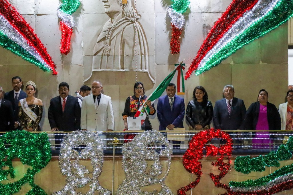 La presidenta municipal de Texcoco Sandra Luz Falcón Venegas junto con el secretario del H. Ayuntamiento Jesús Adán Gordo Ramírez, el Diputado Local Nazario Gutiérrez Martínez, los integrantes del cuerpo de gobierno participaron de la ceremonia del grito de independencia.