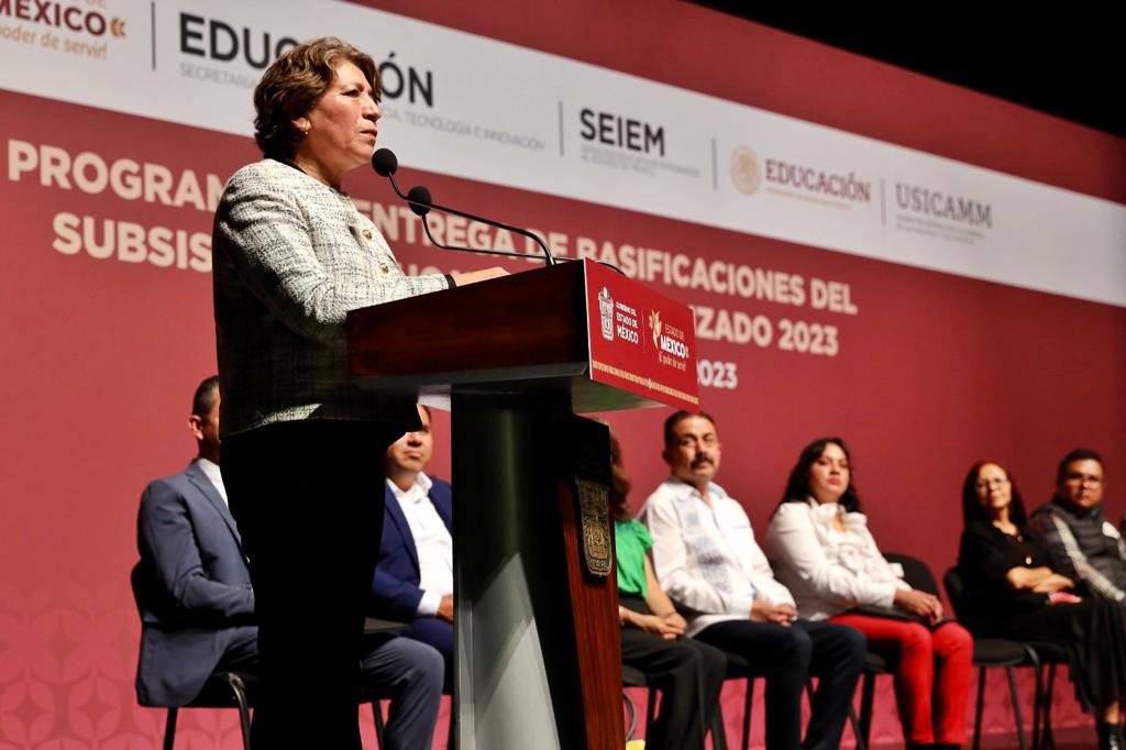 «Estamos celebrando la basificación de cientos de maestros que tienen ahora justicia laboral con su nombramiento definitivo. Estamos celebrando que este es el primer evento que hace la Gobernadora Delfina Gómez con maestros del Estado de México», manifestó la Secretaria federal.