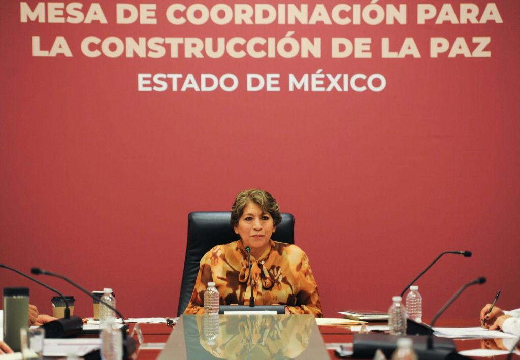 Toluca, Edomex. 28 septiembre 2023. Con la finalidad de revisar la situación de seguridad en el Estado de México y establecer las estrategias para recuperar la paz y la tranquilidad de los mexiquenses, la Gobernadora Delfina Gómez Álvarez dirigió los trabajos de la Mesa de Coordinación para la Construcción de la Paz en la capital estatal.