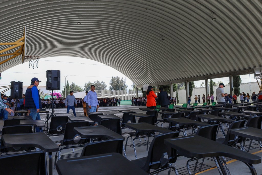 Texcoco, Edomex. 3 octubre 2023. A petición de estudiantes de la Escuela Preparatoria Oficial No. 100, el gobierno municipal de Texcoco equipó aulas con mobiliario escolar para mejorar las condiciones educativas.