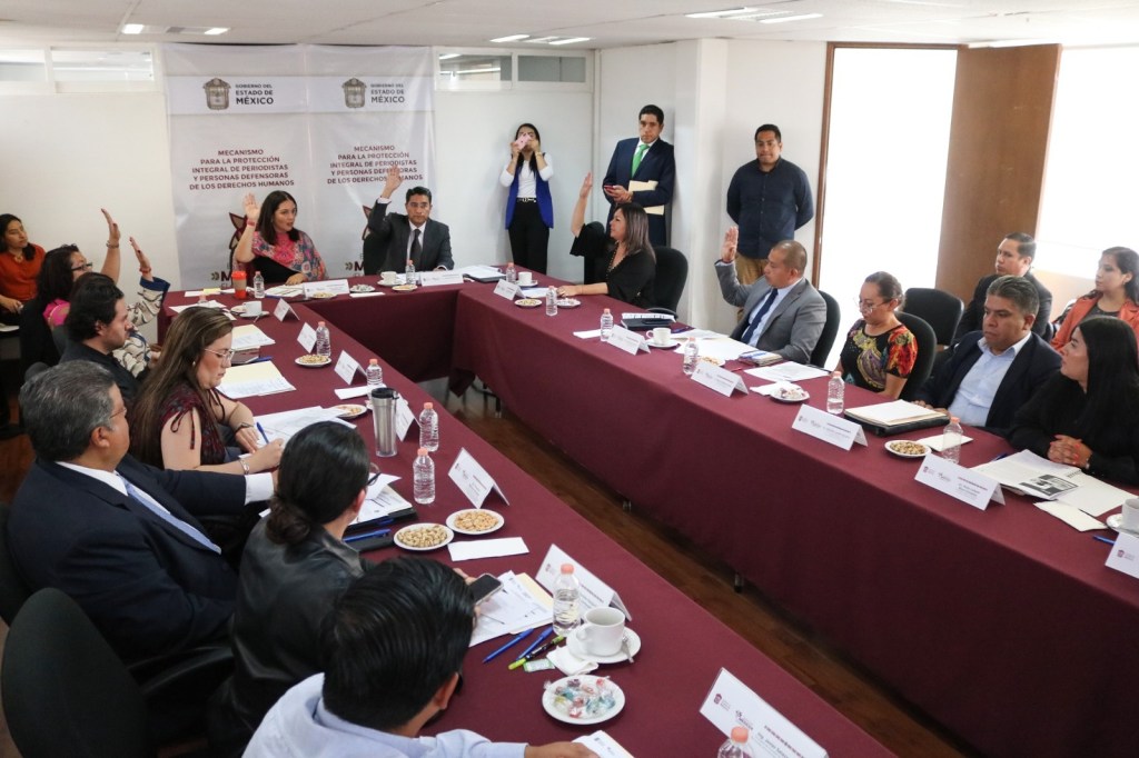En sesión ordinaria y acompañado por la titular de la CEMPIDH, Lorena Hebé Moreno, el Consejero Jurídico indicó que por instrucciones de la Gobernadora del Estado de México, Delfina Gómez Álvarez, trabajará de manera muy cercana con la Junta de Gobierno del Mecanismo para impulsar acciones preventivas integrales a fin de garantizar la libertad de expresión y la defensa de derechos humanos en la entidad.