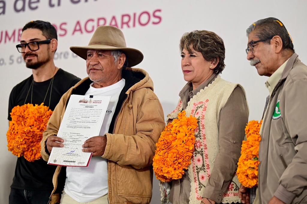 Recibieron sus documentos de manos de la Gobernadora del Estado de México, 21 ejidatarios y comuneros de Chicoloapan, Cuautitlán Izcalli, Chalco, Isidro Fabela, Ixtlahuaca, Tenancingo, Tenango del Valle, El Oro, Temascalcingo, Jilotepec, Tepotzotlán, Ocoyoacac, Tenango del Aire, Jilotzingo, Villa Victoria y Xonacatlán.