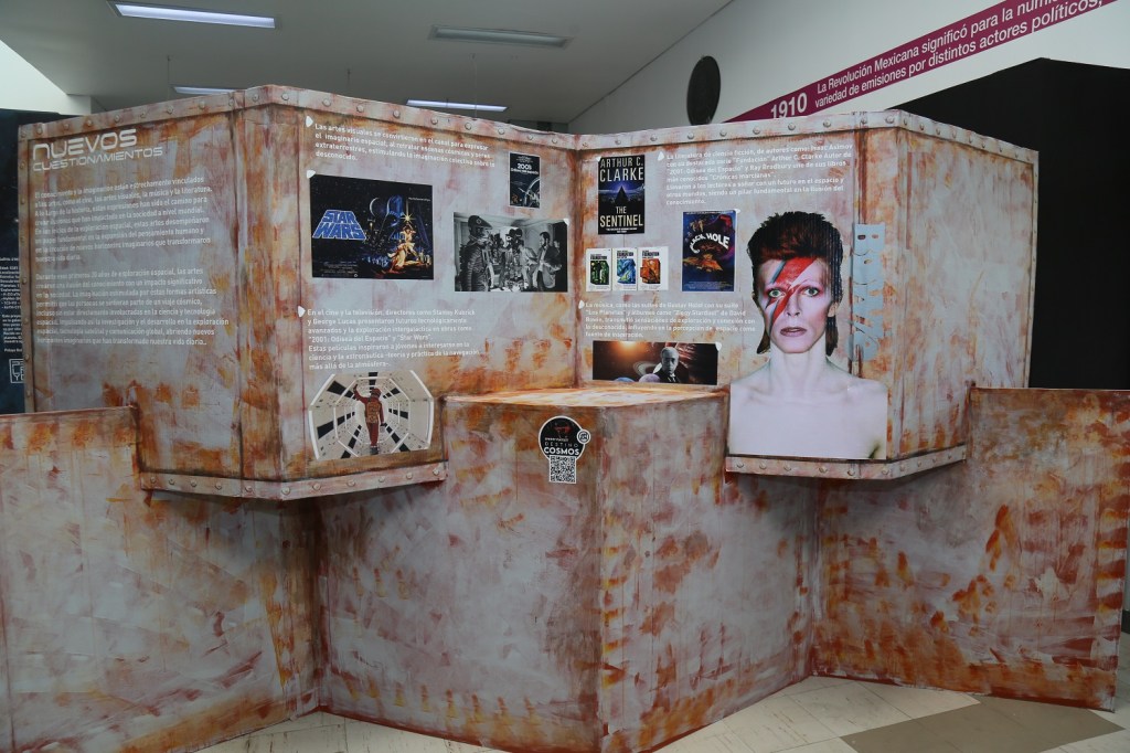 Mediante diversos bloques esta exposición da cuenta de la evolución de la exploración espacial, desde el punto de vista de un antes y un después en la humanidad, pues gracias a sus avances se logró superar la ciencia ficción y convertirla en realidad.