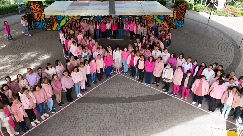 La presidenta municipal de Texcoco Sandra Luz Falcón Venegas, acompañada por la directora del DIF Elizabeth Terrazas Ramírez, así como directoras de área y trabajadores de la administración municipal, se organización para visibilizar la necesidad de hacer conciencia para autoexaminarse, acudir al médico y que se detecta el cáncer a tiempo.