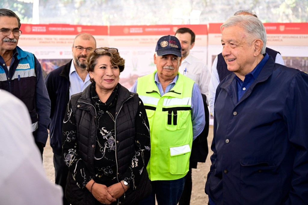 - En la Estación Santa Fe, la Maestra Delfina Gómez acompañó al Mandatario a la supervisión de la obra que conectará a Toluca con la Ciudad de México.