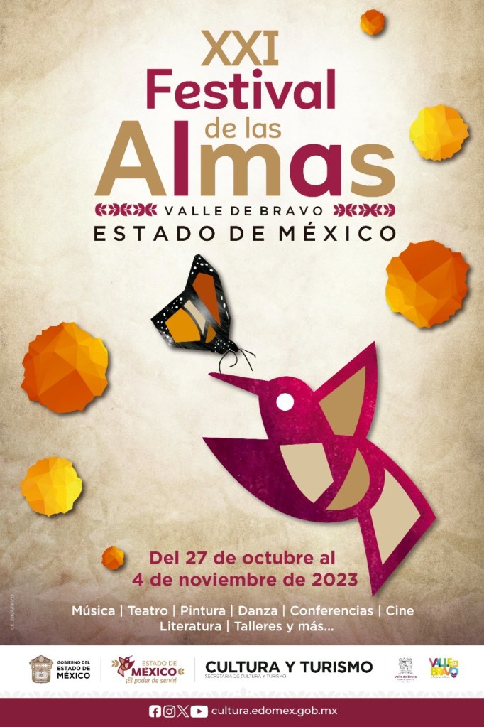 Valle de Bravo, Edomex. 24 octubre 2023. Con el compromiso de impulsar el desarrollo integral de la población, el Gobierno de la Maestra Delfina Álvarez, a través de su Secretaría de Cultura y Turismo, presenta el Festival de las Almas 2023, el cual redefine su vocación cultural y ofrece actividades de que se llevarán a cabo durante nueve días en el Pueblo Mágico de Valle de Bravo.