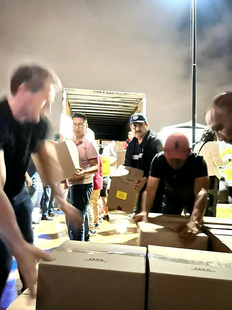 Con la representación de la Gobernadora Delfina Gómez Álvarez, el Director General de Protección Civil, Adrián Hernández Romero encabezó el traslado de alimentos, productos de higiene personal, insumos médicos y comida para mascotas, mismos que fueron recibidos por Víctor Edgar Arenas, Secretario de la Contraloría y Transparencia Gubernamental del estado de Guerrero.