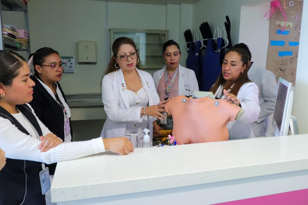 Posteriormente, en la Ciudad Salud recorrió el Centro de Salud, la Clínica de Maternidad y la Unidad Médica Especializada para la Detección y Diagnóstico de Cáncer de Mama (UNEME-DEDICAM), donde la Doctora María del Rosario Domínguez Ramos, Coordinadora municipal, explicó que se brindan servicios especializados a la población femenina, como la exploración mamaria, la realización de mastografías, además de atención psicológica, seguimiento y acompañamiento emocional.