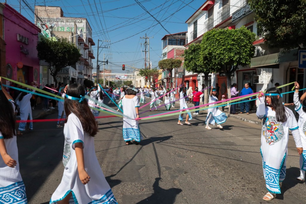 Las diferentes escuelas participaron con tablas rítmicas y bailes que dieron colorido a este desfile que fue visto por miles de Texcocanos.