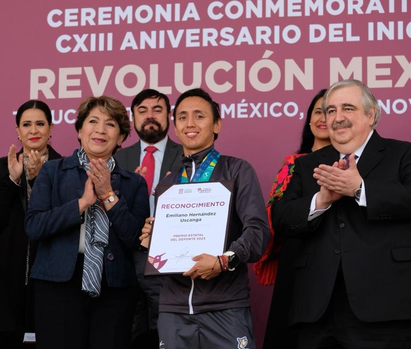 TOLUCA, Estado de México.- En el marco del 113 Aniversario de la Revolución Mexicana, la Gobernadora del Estado de México, Delfina Gómez Álvarez entregó el Premio Estatal del Deporte 2023 a Emiliano Hernández Uscanga; Itzamary González Cuellar; Citli Siloé Salinas Rojas y a Orlando Ibarra Pérez como reconocimiento a los resultados obtenidos en las disciplinas que practican.