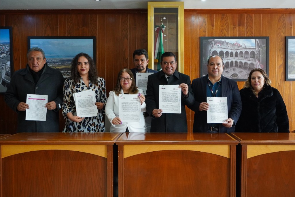 Texcoco, Edomex. 23 noviembre 2023. El gobierno municipal de Texcoco firmó un convenio de colaboración con la junta local distrital 38 del Instituto Nacional Electoral (INE), para establecer acciones encaminadas a cubrir las necesidades de accesibilidad en oficinas del ayuntamiento y lugares públicos en donde se apruebe la ubicación de casillas para el proceso electoral 2023-2024.