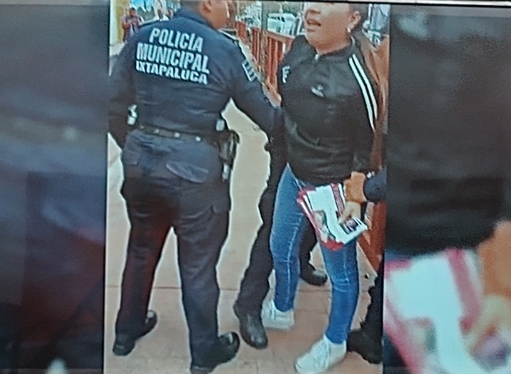 Foto. Profra. Fanny Peralta fue agredida y detenida por policías municipales de Ixtapaluca sin argumento alguno.