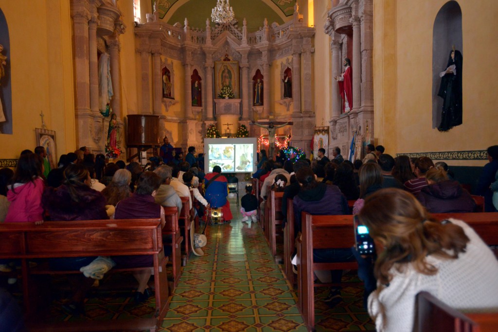 A grandes rasgos, explicó el proceso de investigación y restauración de que fue objeto la pieza, y resaltó que la intervención de la imagen fue un esfuerzo colectivo del equipo de restauradores del Centro INAH Zacatecas, para poder reintegrarla a la comunidad.