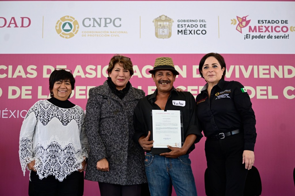 TLALNEPANTLA, Estado de México.- En cumplimiento al compromiso del Presidente Andrés Manuel López Obrador se entregaron viviendas a 210 familias damnificadas por el desgajamiento del Cerro del Chiquihuite, ocurrido el 10 de septiembre de 2021, en un evento encabezado por la Maestra Delfina Gómez Álvarez, Gobernadora del Estado de México; Laura Velázquez Alzúa, Coordinadora Nacional de Protección Civil; Edna Elena Vega Rangel, Subsecretaria de Ordenamiento Territorial y Agrario de la Secretaría de Desarrollo Agrario, Territorial y Urbano (SEDATU).