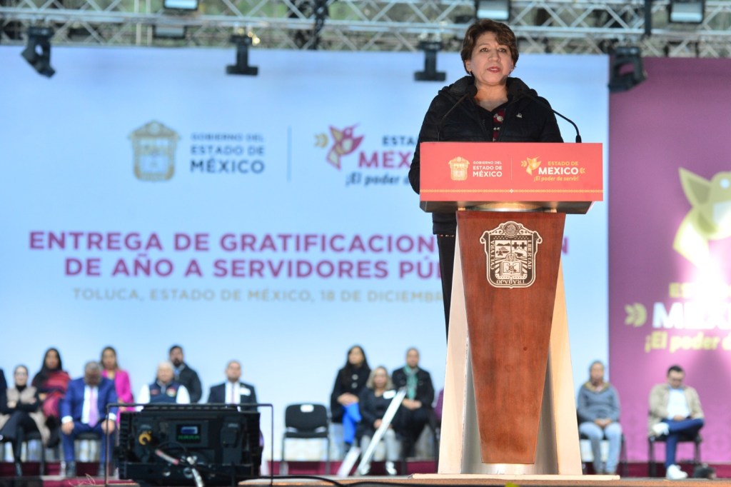 “Esta gratificación es la prueba de que El Poder de Servir trasciende los actos individuales y se convierte en la fuerza que mueve al Estado de México, porque para nosotros El Poder de Servir es más que un slogan, es un cambio de paradigma en la forma de gobernar”, aseveró la Maestra Delfina Gómez.
