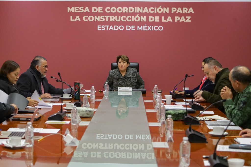 TOLUCA, Estado de México. Al reunirse con los integrantes de la Mesa de Coordinación para la Construcción de la Paz, la Maestra Delfina Gómez Álvarez, Gobernadora del Estado de México aseguró que su gobierno redoblará esfuerzos para mejorar las condiciones de seguridad y atender las causas que originan la violencia, para generar el bienestar de las familias mexiquenses.