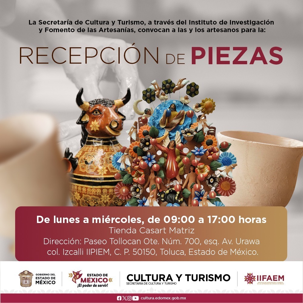 Para quienes residen en el Valle de Toluca, la recepción de piezas es en las oficinas del IIFAEM en Paseo Tollocan, #700, esq. Av. Urawa, en la colonia Izcalli IIPIEM, o bien, si pertenece a otro municipio puede acudir a la tienda Casart más cercana a su localidad.