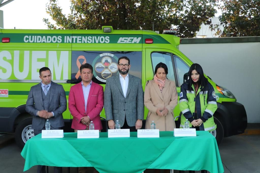 En este sentido, Rodrigo Rodríguez Briseño, Coordinador de Salud del Instituto de Salud del Estado de México (ISEM), en representación de la doctora Macarena Montoya, titular de la Secretaría de Salud, constató que 71 ambulancias del SUEM cuentan con el lazo naranja, que las acredita para auxiliar a quienes sean víctimas de agresiones, acto en el que también se inauguró el área de descanso para personal de este organismo.