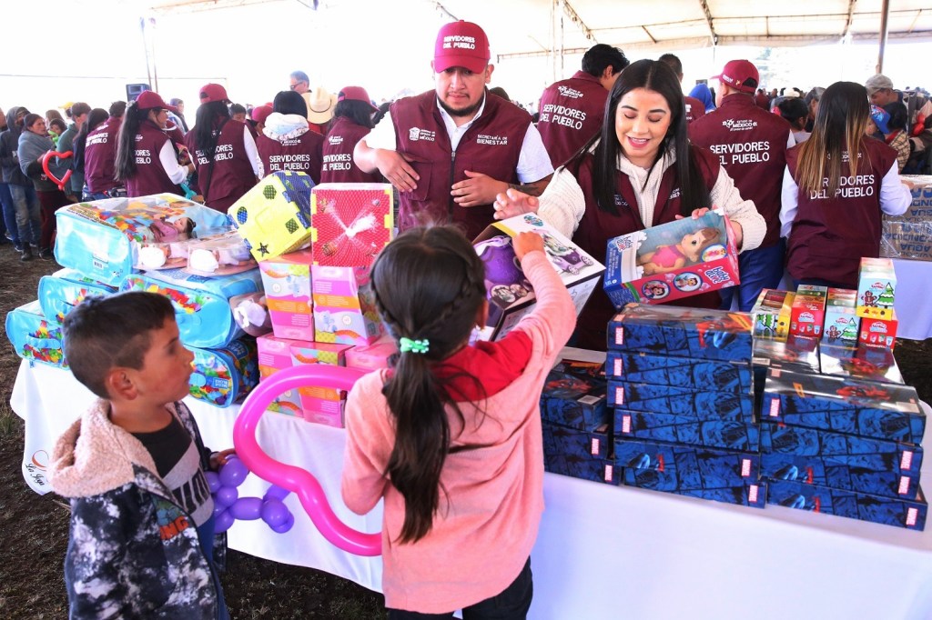 TEXCALTITLÁN, Estado de México.- En el marco de la celebración por el Día de Reyes, decenas de niñas y niños de Texcaltitlán a nombre de la Maestra Delfina Gómez Álvarez, Gobernadora del Estado de México recibieron juguetes, partieron la tradicional rosca y disfrutaron de un espectáculo de payasos y juegos mecánicos.