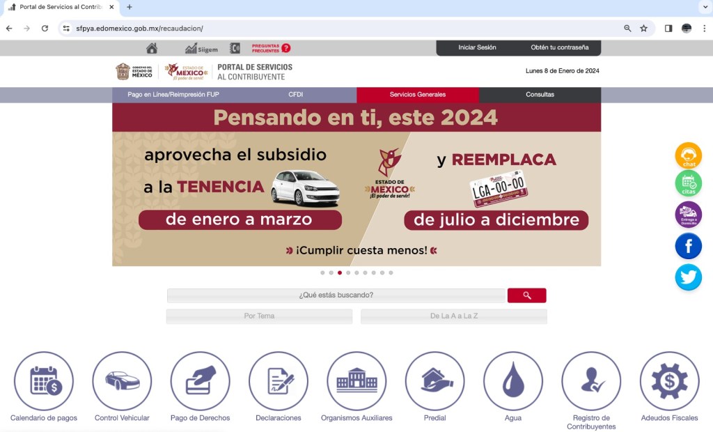 TOLUCA, Estado de México.- El Gobierno del Estado de México, a través de la Secretaría de Finanzas, informa a los contribuyentes mexiquenses que desde el 01 de enero de 2024, el Portal de Servicios al Contribuyente ha operado de forma correcta y sin inconvenientes para que la ciudadanía pueda realizar sus trámites de control vehicular, declaración de impuestos, derechos, así como servicios de predial y agua.