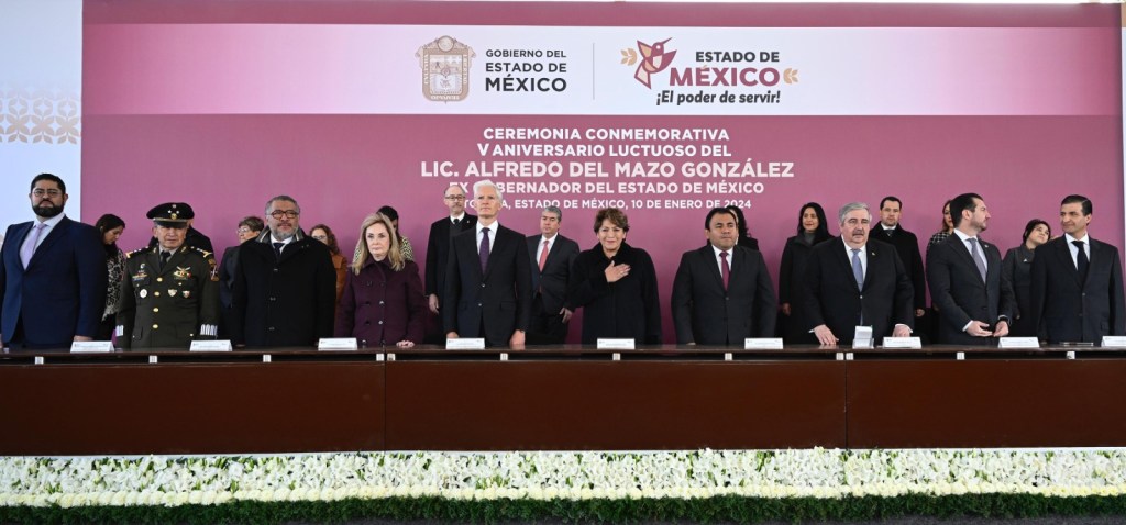 TOLUCA, Estado de México.- El Secretario General de Gobierno del Estado de México, Horacio Duarte Olivares señaló que, en el ejercicio del servicio público y el arte de gobernar, es el pueblo quien juzga el valor del trabajo de los gobernantes, durante la Ceremonia Conmemorativa por el V Aniversario Luctuoso del exgobernador mexiquense Alfredo Del Mazo González, que encabezó la Gobernadora Delfina Gómez Álvarez.