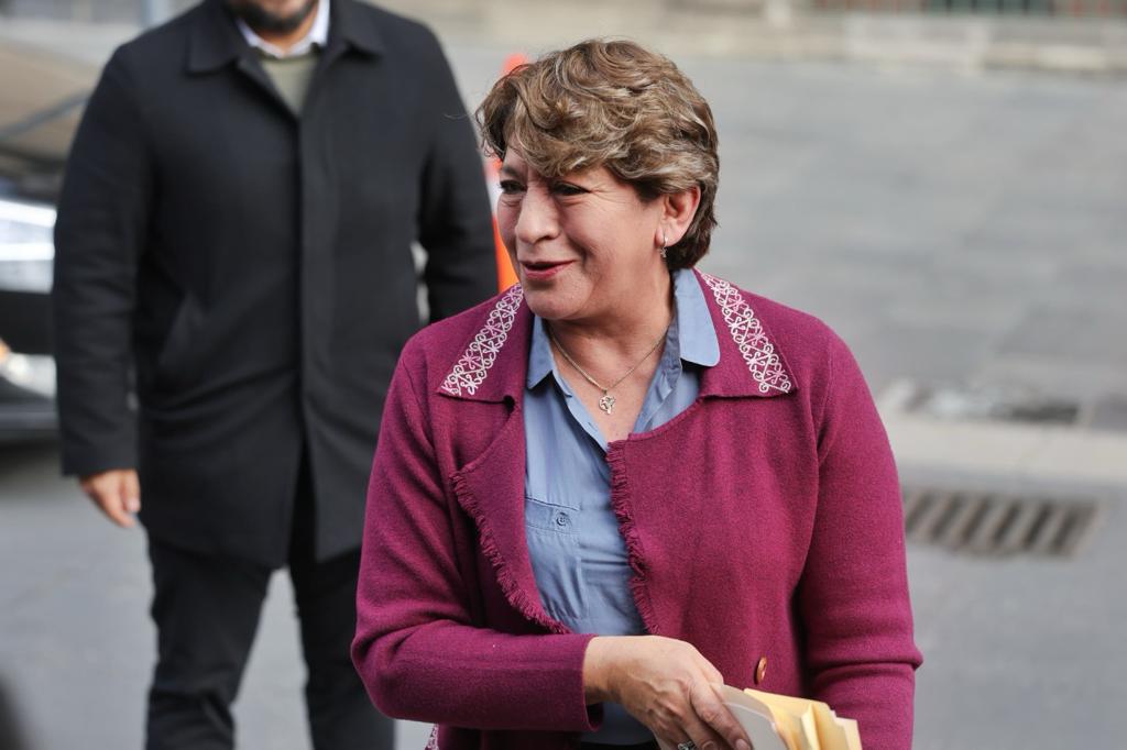 CDMX. La Maestra Delfina Gómez Álvarez, Gobernadora del Estado de México acudió a Palacio Nacional para participar en la sesión de la Comisión Presidencial para el Seguimiento a la Federalización del Sistema de Salud.