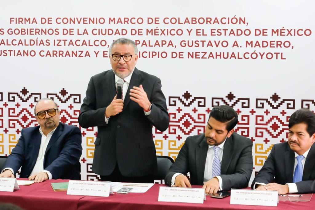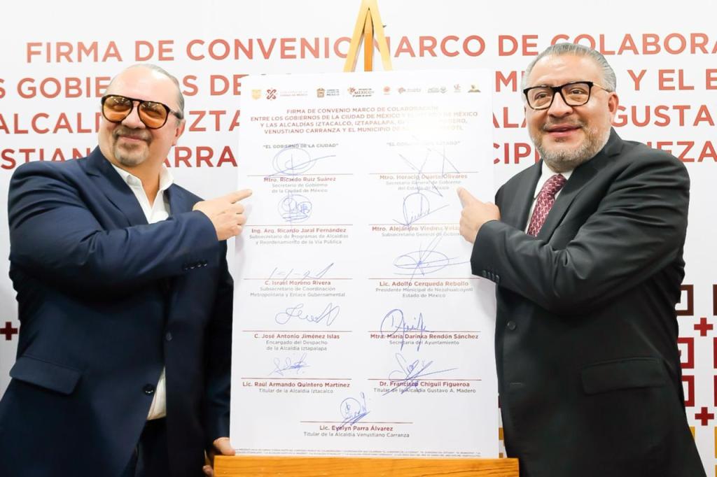 La firma del convenio, realizada en el Antiguo Palacio del Ayuntamiento de la CDMX, es un mecanismo para potenciar la colaboración y operación en materia de seguridad, educación, movilidad, vía pública, espacios públicos y aquellas áreas encaminadas a atender las necesidades de los habitantes de la CDMX y Estado de México.