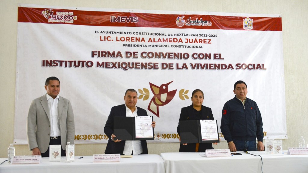 NEXTLALPAN, Estado de México.- El Gobierno del Estado de México, dirigido por la Maestra Delfina Gómez, a través del Instituto Mexiquense de la Vivienda Social (Imevis), firmó un convenio de colaboración con el Ayuntamiento de Nextlalpan, a fin de facilitar a las y los mexiquenses el acceso a los documentos indispensables para obtener el título de propiedad, de posesión o escrituras de su casa o terreno.