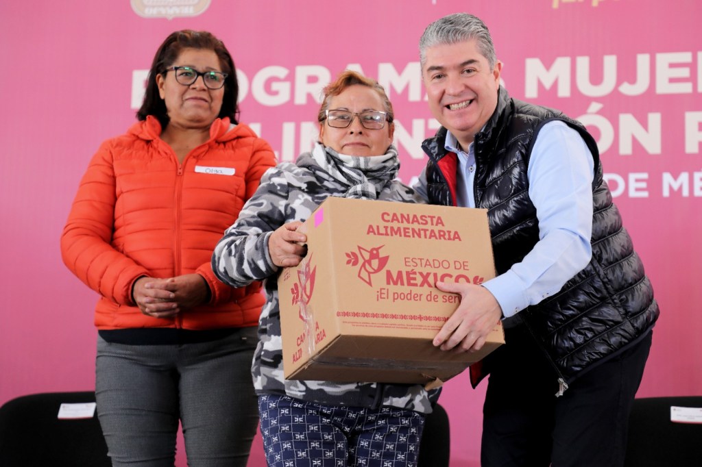 De igual forma, presentó el programa Alimentación para el Bienestar, a través del cual se otorgan de forma bimestral, canastas alimentarias con 24 productos alimentarios y de limpieza a mujeres de 55 a 64 años, principalmente, que se encuentran en condición de pobreza y carencia de alimentación nutritiva y de calidad.