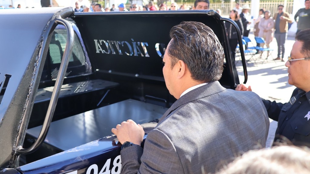 Una vez terminado el acto protocolario, se llevó a cabo la entrega al Director de Protección Civil y Bomberos, C.D. Héctor Rodríguez Seguín uniformes para su personal, además de la entrega de una patrulla nueva a la Dirección de Seguridad Pública, misma que se suma al parque vehicular y eficientar los servicios en las diferentes comunidades que conforman este municipio.