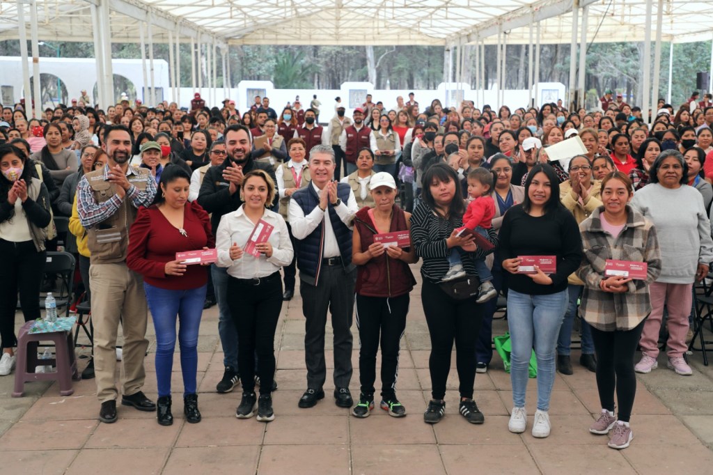 González Romero entregó mil 270 tarjetas de Mujeres con Bienestar a las mexiquenses de la región, programa que otorga un apoyo monetario de 2 mil 500 pesos bimestrales y otros servicios complementarios dirigidos al cuidado de la salud, educación y economía familiar. Asimismo, señaló que en este mes las mexiquenses recibirán 7 mil 500 pesos correspondientes a los bimestres enero-febrero, marzo-abril y mayo-junio.