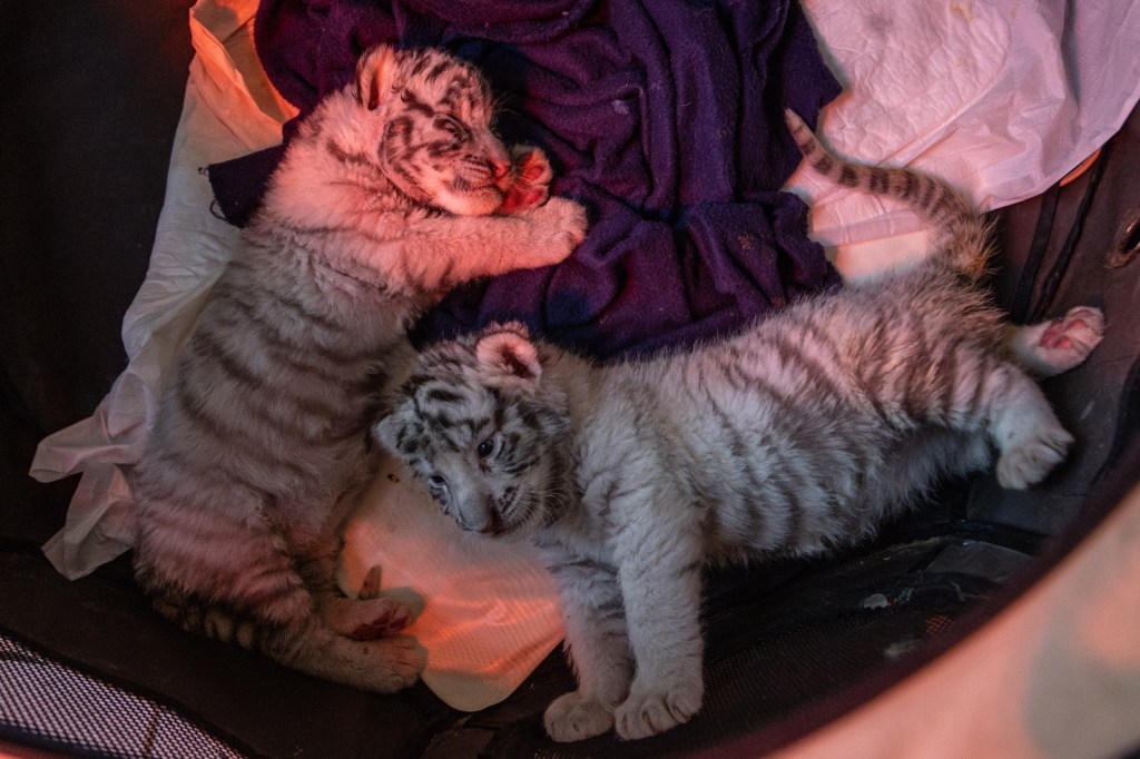 Con las dos crías de tigre blanco la colección faunística de “Zacango” crece a siete ejemplares. Sus padres son Toulouse y Duquesa, de tres y dos años de edad, respectivamente.