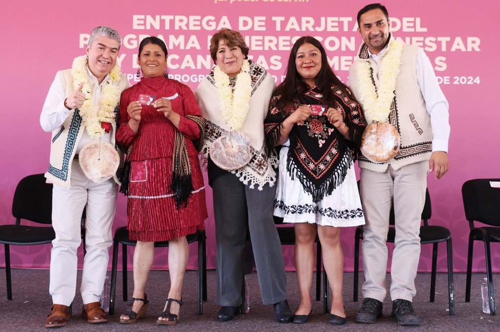 Ante 3 mil de beneficiarias, la Gobernadora Delfina Gómez explicó que las tarjetas están diseñadas para que puedan tener acceso a diferentes servicios jurídicos, educación, asistencia emocional y médica, seguro de vida y de defunción, así como descuento en transporte.