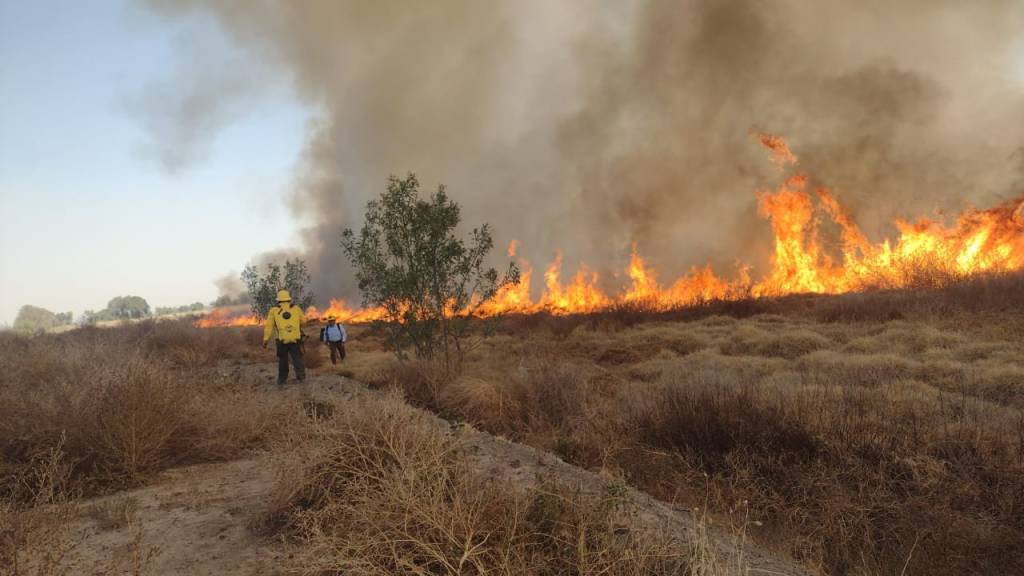 Elementos del cuerpo de Bomberos de Texcoco laboraron para sofocar el incendio, estableciendo brechas cortafuego para evitar que se extendiera hacia otras zonas de pastizal y que se incrementaran las emisiones contaminantes.