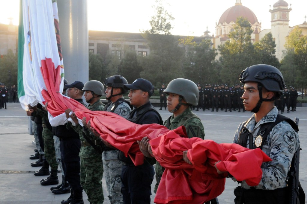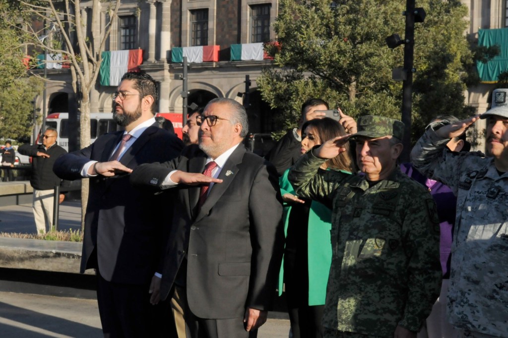 TOLUCA, Estado de México. En representación de la Gobernadora del Estado de México, el Secretario General de Gobierno encabezó la Ceremonia de Izamiento de la Bandera Nacional, donde participaron las y los integrantes de la Mesa de Coordinación para la Construcción de la Paz, así como las y los integrantes del Gabinete Legal y ampliado.