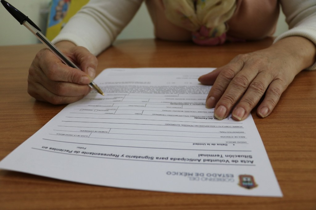 TOLUCA, Estado de México.-La Secretaría de Salud del Estado de México acerca el servicio para obtener la constancia de Voluntad Anticipada, derecho que se tiene para elegir o rechazar tratamientos o procedimientos médicos, en caso de tener diagnóstico de una enfermedad en etapa avanzada y/o terminal.