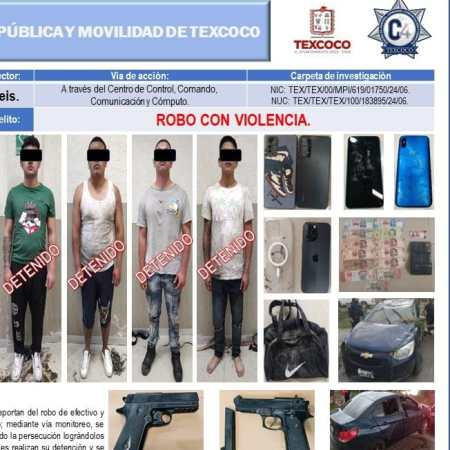 Aseguran a 4 presuntos vendedores de autos por robo con violencia en Texcoco