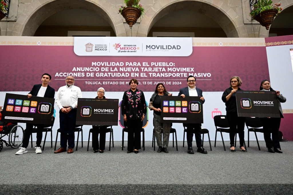 Al presentar la tarjeta Movimex, que servirá para realizar todos los pagos electrónicos en el sistema de transporte del Estado de México, la Maestra Delfina Gómez Álvarez destacó que su gobierno está trabajando para ofrecer soluciones concretas y efectivas para mejorar la movilidad para el pueblo mexiquense.