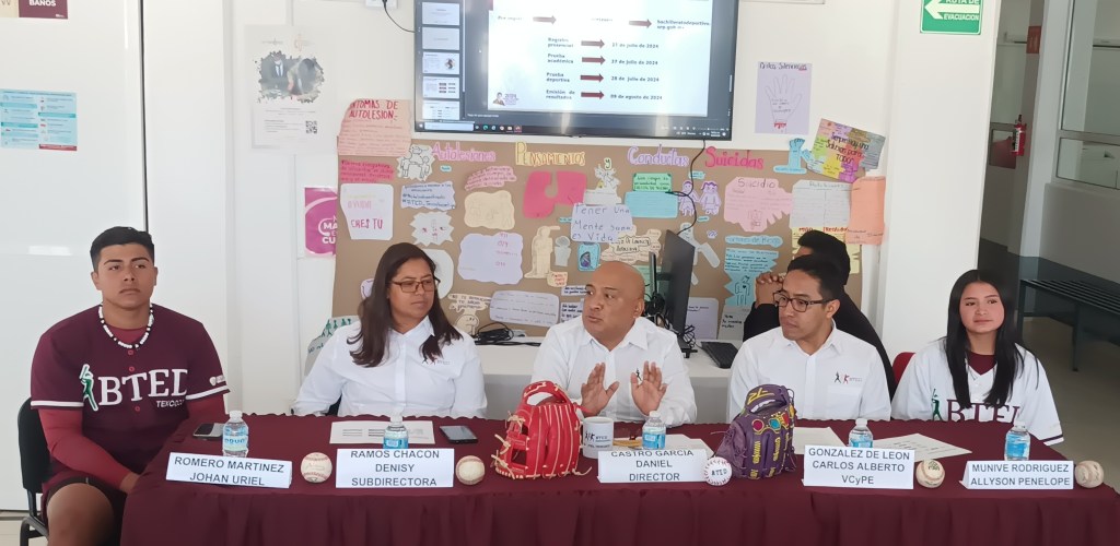 Texcoco, Edomex. 14 junio 2024. En conferencia de prensa Daniel Castro García, director del plantel del Bachillerato Tecnológico Deportivo ubicado en el municipio de Texcoco, a unos metros del complejo de béisbol, informó que los jóvenes quienes aspiran a una preparación deportiva, esta es una opción latente tanto para hombres como mujeres.