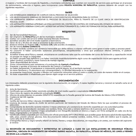 20 agosto, 2024 Antac Noticias Lanzan convocatoria para formar parte de la policía municipal en Papalotla