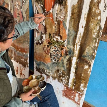 Restauración de vela pintura original del templo de Santa María Huiramangaro, Pátzcuaro, Michoacán
