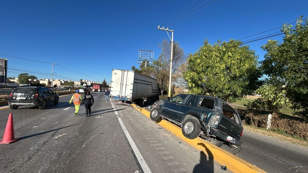 En el accidente que tuvo lugar la mañana de este viernes se vieron involucrados un tractocamión y una camioneta particular en donde no hubo lesionados de gravedad, solo daños materiales.