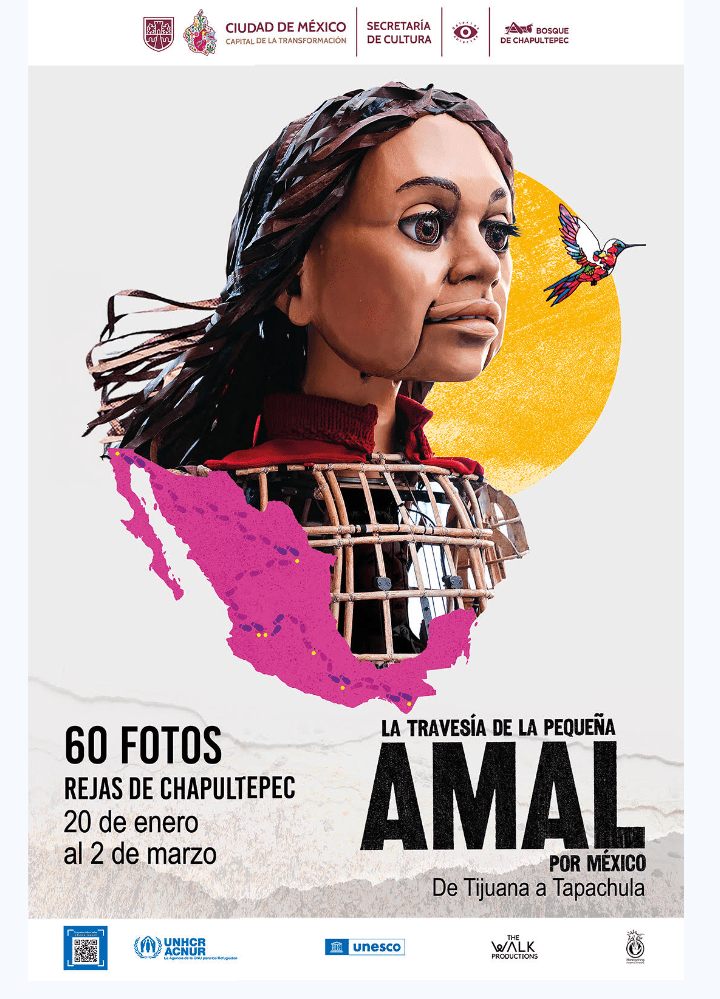 Del 20 de enero al 2 de marzo de 2025, en las rejas del Bosque de Chapultepec se expondrán 60 fotografías que reviven el paso de Amal, entre el 6 y el 26 de noviembre de 2023, por siete ciudades mexicanas: Tijuana, Monterrey, Guadalajara, Zapopan, Ciudad de México, Oaxaca y Tapachula.