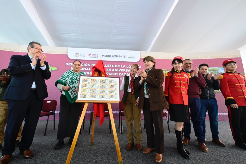 CALIMAYA, Estado de México. – Para conmemorar el 44 aniversario del Parque Ecológico Zacango, la Gobernadora del Estado de México, Delfina Gómez Álvarez develó el Billete Conmemorativo de la Lotería Nacional alusivo a esta celebración, reconociendo a este espacio como uno de los más importantes del país; alberga a 880 animales de 171 especies, incluyendo al Lobo Gris Mexicano, el Águila Real, el Cóndor de California y del Rinoceronte Blanco, en peligro de extinción.