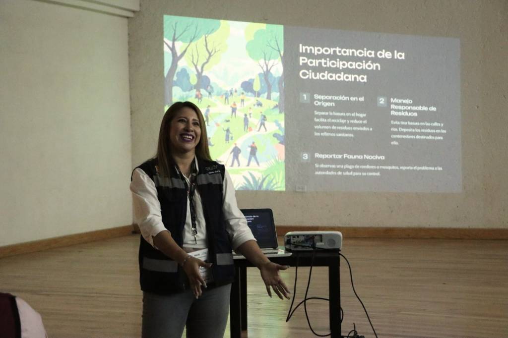 Durante la plática, Ruben Domínguez Baeza, titular de la Dirección de Servicios Públicos, destacó que una de la prioridades de la presidenta municipal Xóchitl Flores Jiménez es mejorar el manejo de los residuos y de esta manera generar un mejor municipio. El titular de Servicios Públicos anunció que, por el bien de la población y para contribuir a la generación de un municipio más limpio, realizará una campaña acerca del manejo de los residuos sólidos y separación de basura.